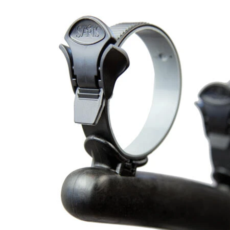 Spring buckle straps with vinyl-coated hooks.