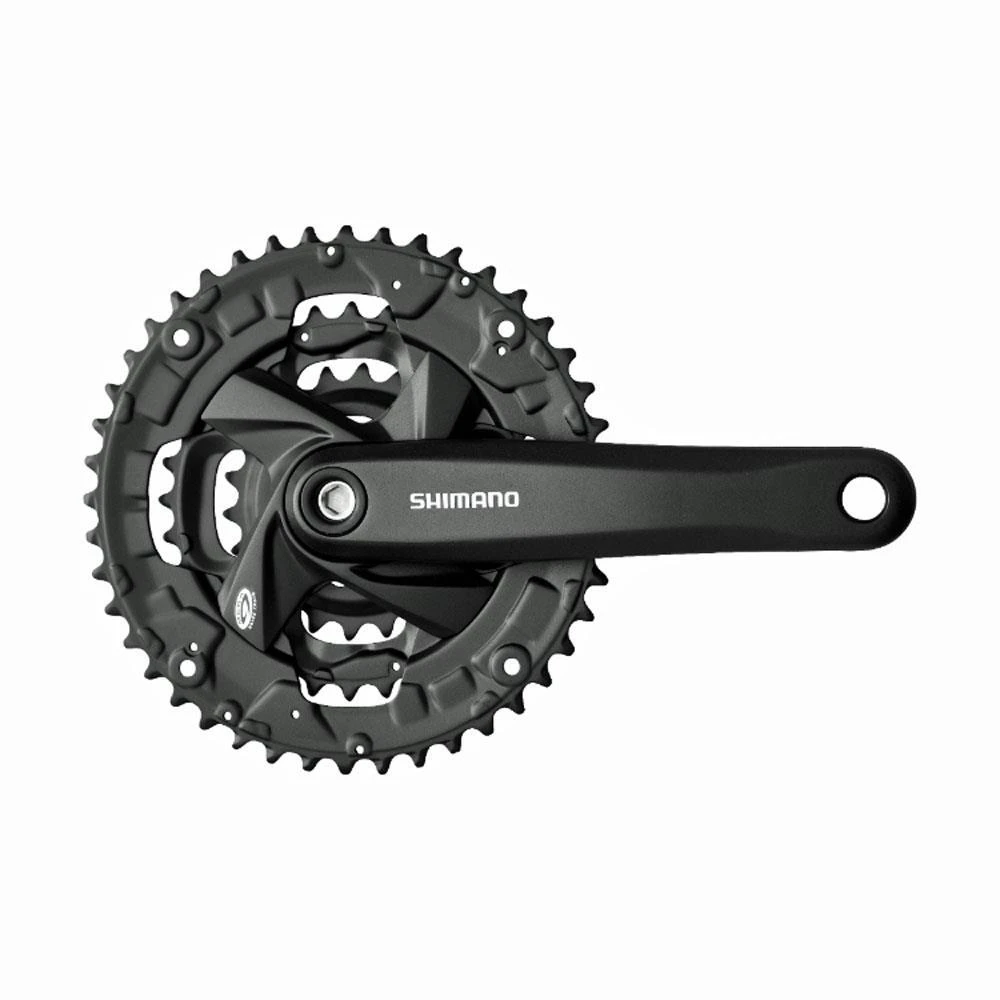 Shimano Altus FC-M371 for 3 x 9 speed drivetrains includes 44-32-22T hyperdrive SGX chainrings, crank fixing bolts and is supplied in matt black finish.